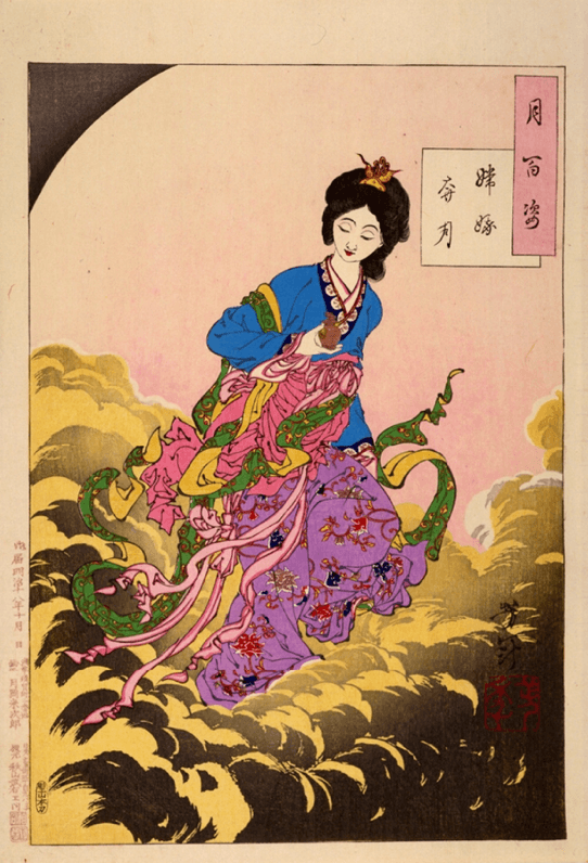 Figure 5 : Tsukioka, Yoshitoshi. "Chang'e Flying to the Moon" from the series "Tsuki Hyakushi" (One Hundred Aspects of the Moon), 1885, ōban print.