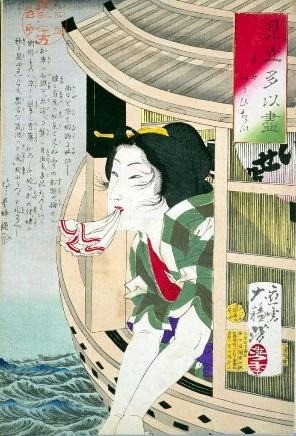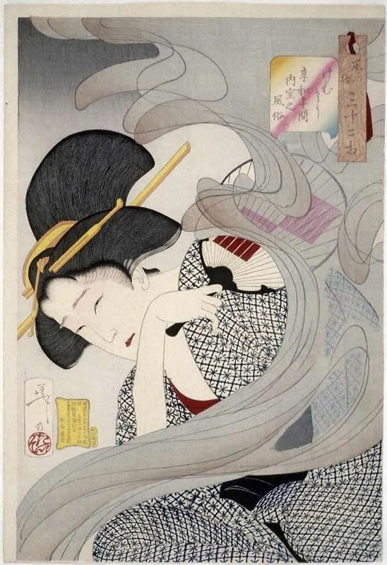 Figure 1 : Tsukioka, Yoshitoshi. "Customs of the Inner Chambers during the Kemu-Sō Era" from the series "Fūzoku Sanjūnisō" (Thirty-Two Aspects of Customs and Manners), 1888, ōban print.